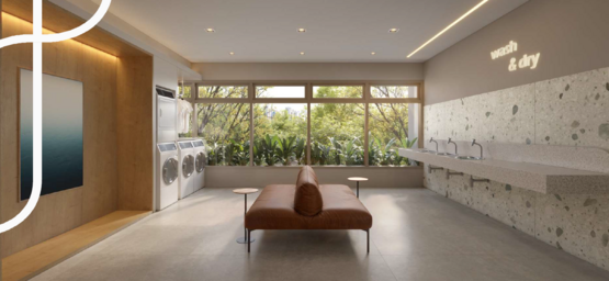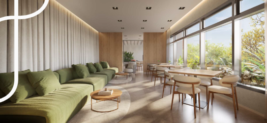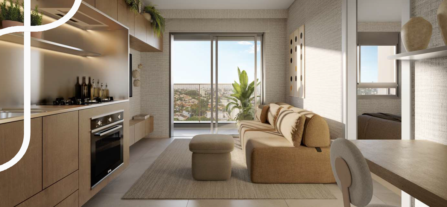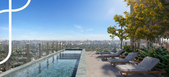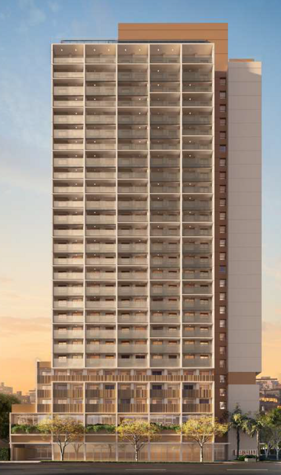 A área comum foi planejada para atender à dinâmica contemporânea de moradia compacta, oferecendo acesso com clausura, lobby, central delivery e bicicletário equipado com bancada de manutenção e ponto para recarga de bicicletas elétricas. No 1º andar, o lazer contempla lounge, coworking com sala de reunião, espaço para mini-market, pub com jogos, lavanderia coletiva, salão de festas e churrasqueira. Na cobertura, o 27º pavimento concentra o lazer panorâmico, com lounge, fitness com consultoria especializada, solário e piscina descoberta climatizada com prainha. As áreas comuns serão entregues mobiliadas e equipadas conforme memorial descritivo, com ar-condicionado instalado em ambientes estratégicos e infraestrutura para Wi-Fi e sistema de CFTV. O empreendimento conta ainda com gerador para atendimento emergencial de elevadores e sistemas essenciais.